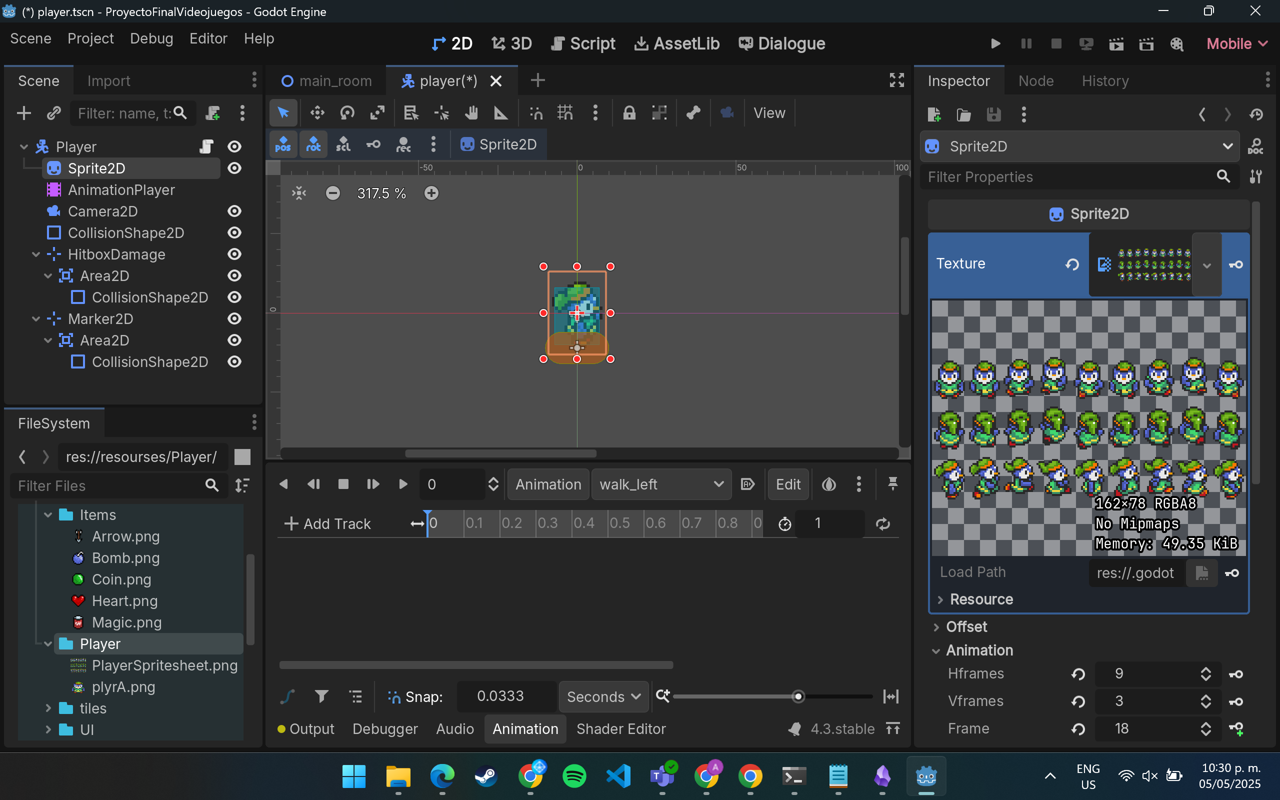 Tambien toco continuar desarrollando el video juego para mi clase de desarrollo de videojuegos, no lo había comentado pero este es una mezcla de Legend of Zelda que vimos en un tutorial, se ve interesante el concepto y mas que nada es para agarrar experiencia, de momento se ve así:
